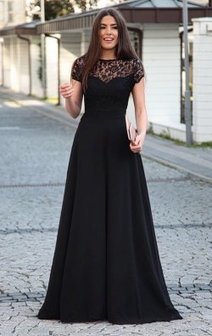 Siyah Sifon Kol Abiye Modeli Abiyeler