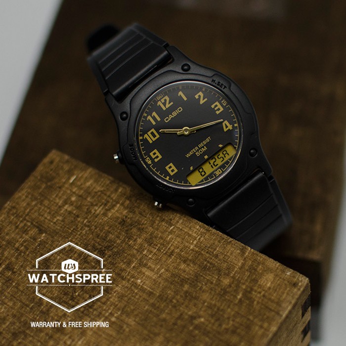 Jam Tangan Casio Aw 49h 1b Original Hitam Gold Aw49h Shopee Indonesia