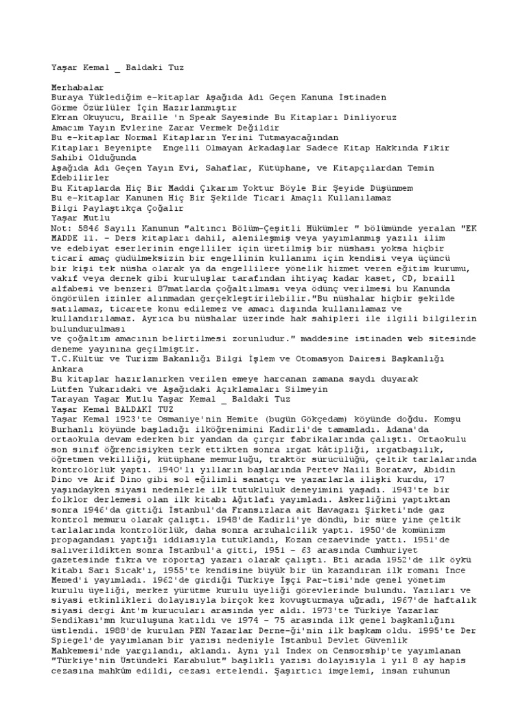 Yasar Kemal Baldaki Tuz